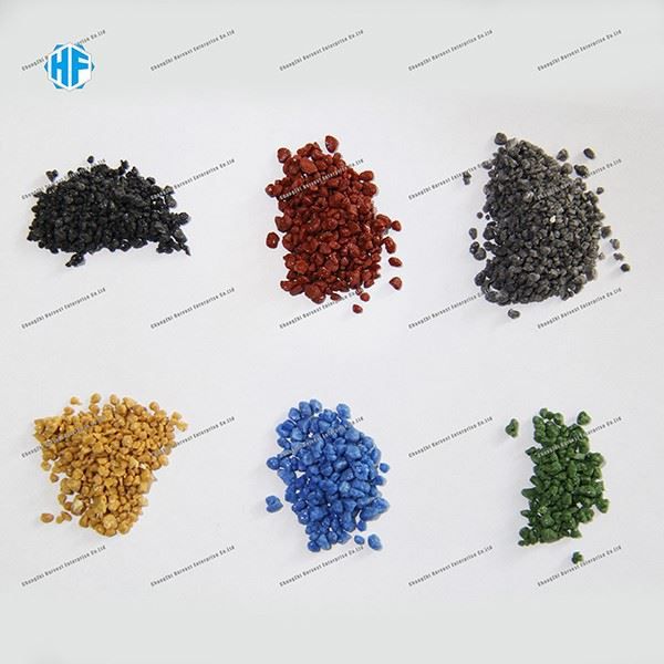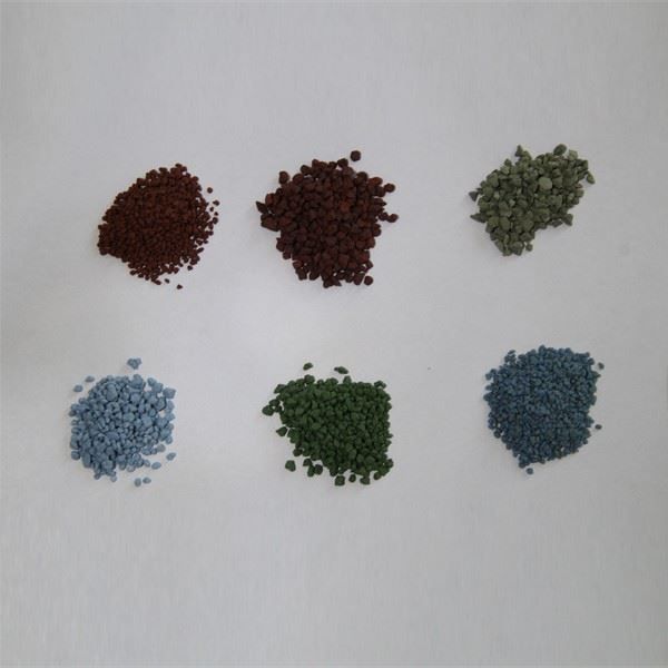 Керамички агрегати, исто така наречени керамички патикули. Главната суровина е суровина од керамика. Големината е 0,5-1мм, 1-2мм, 2-3мм, 3-4мм, 2-4мм, 3-5мм или според барањата на клиентите. Технологијата на производство е во која се мешаат неорганскиот пигмент и сите видови керамички адитиви за синтерување и потоа се користи машината за преса за да се истисне и обликува. (Општо земено, нашата машина за преса е под 1000pa) и потоа се дроби во честички со различна големина според барањето. А потоа со синтерување 180 минути во средина од 1380, кога ќе заврши, повторно ќе се просее. Бојата е црвена, бела, сина, зелена, жолта, сива, итн. или според барањата на клиентите.